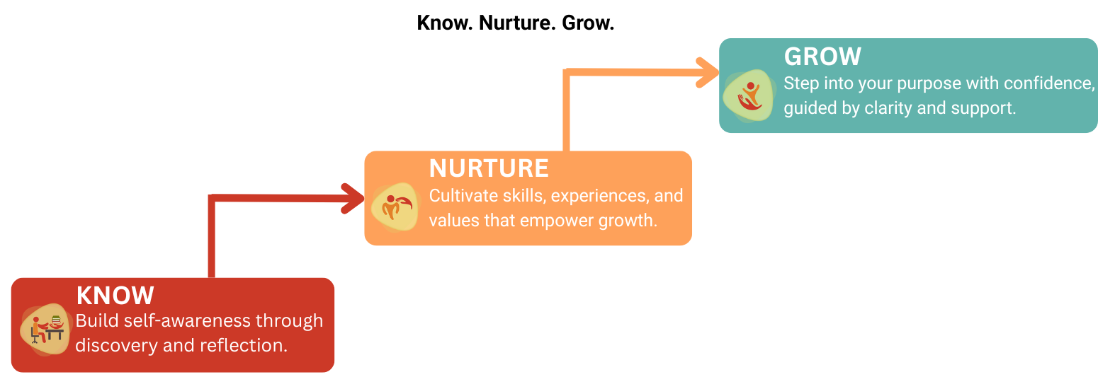 The rising figure represents every student’s journey of self-discovery, courage, and growth. The open hand beneath symbolize our role as steady guides — empowering learners to explore freely, knowing they’re supported at every step.