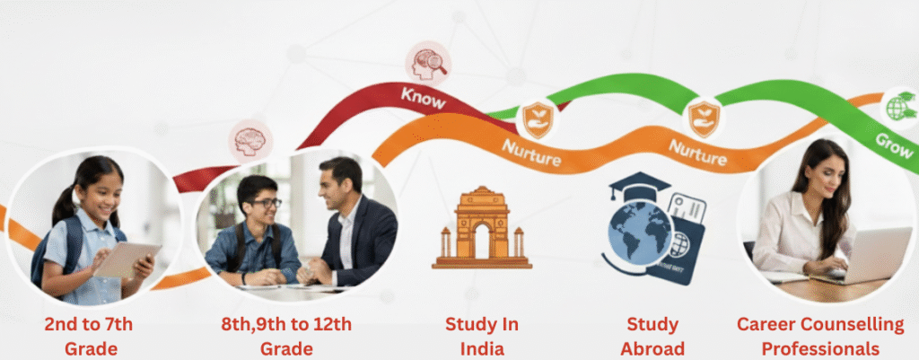 Whether you’re just beginning to explore your interests or planning your next big academic or career move, KNG offers personalized guidance, assessments, and structured support for every stage of your journey.